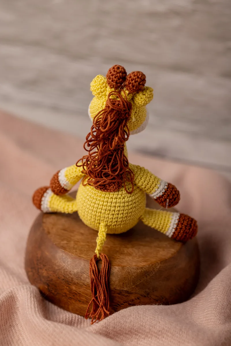 This little giraffe has been crocheted by hand, stitch by stitch, by an artisan who takes real pride in their work. You can tell when you hold it. The proportions are right, the face has character, and it has that slight weight that only comes from something that was actually made rather than manufactured. Kids pick up on that. So do parents.