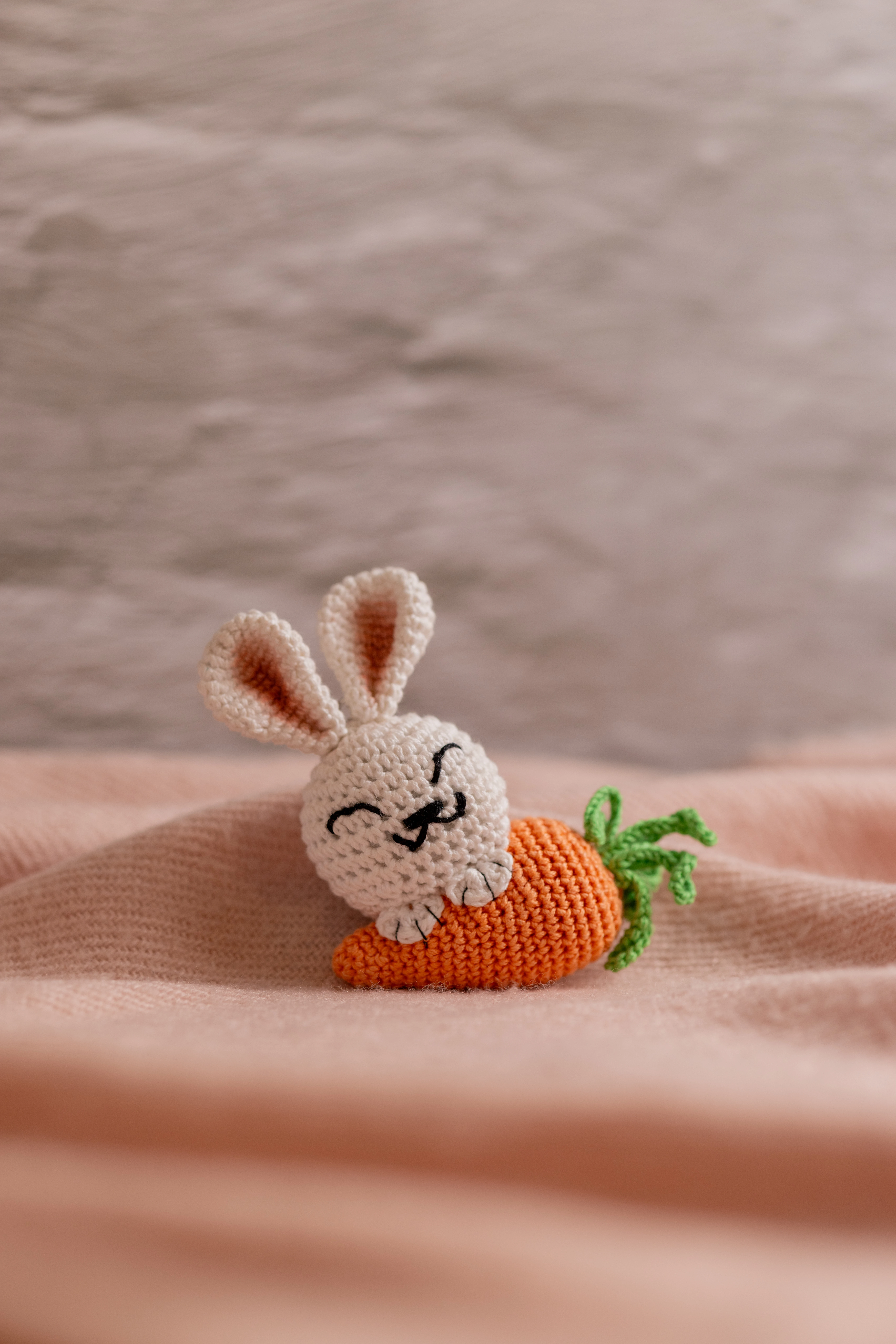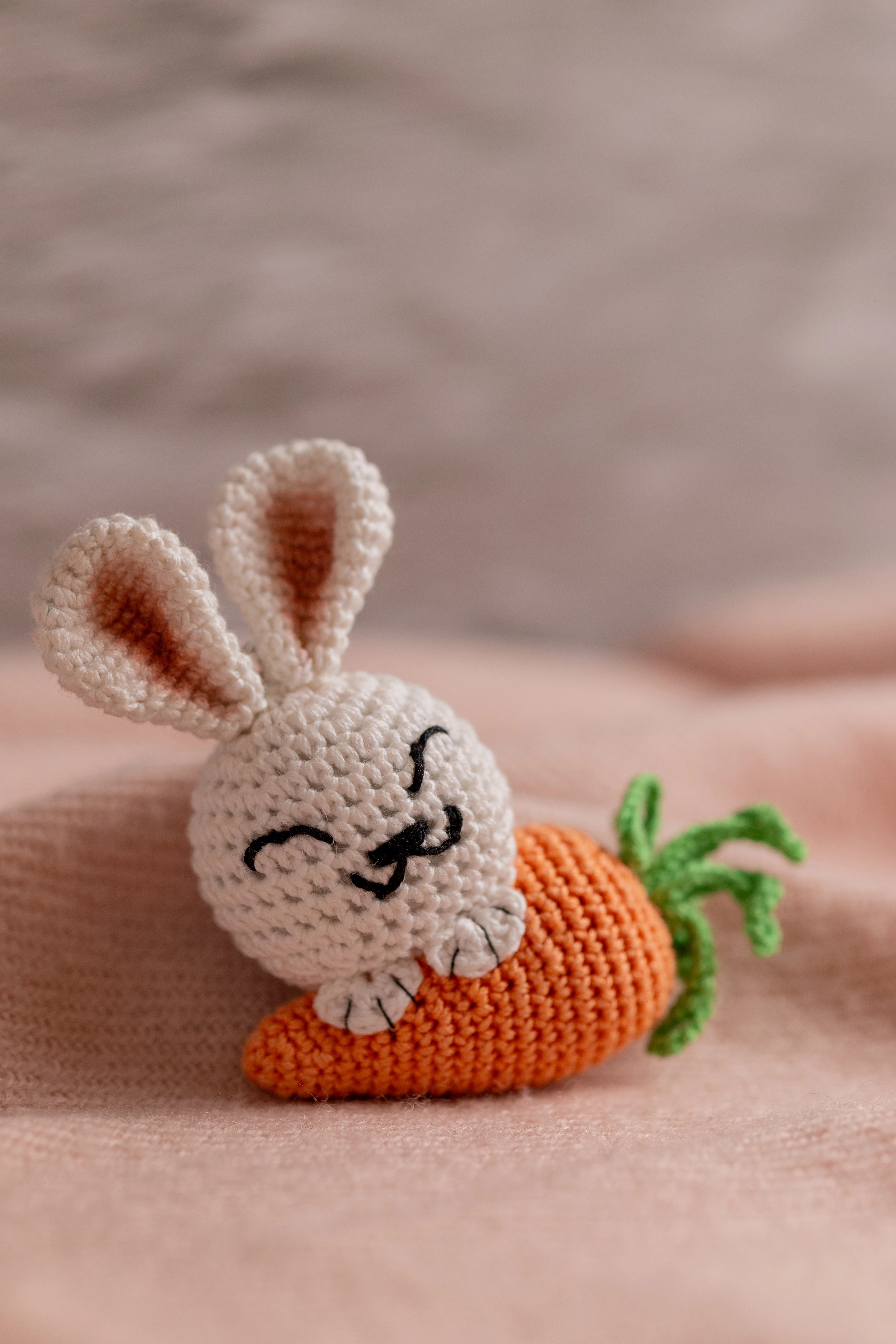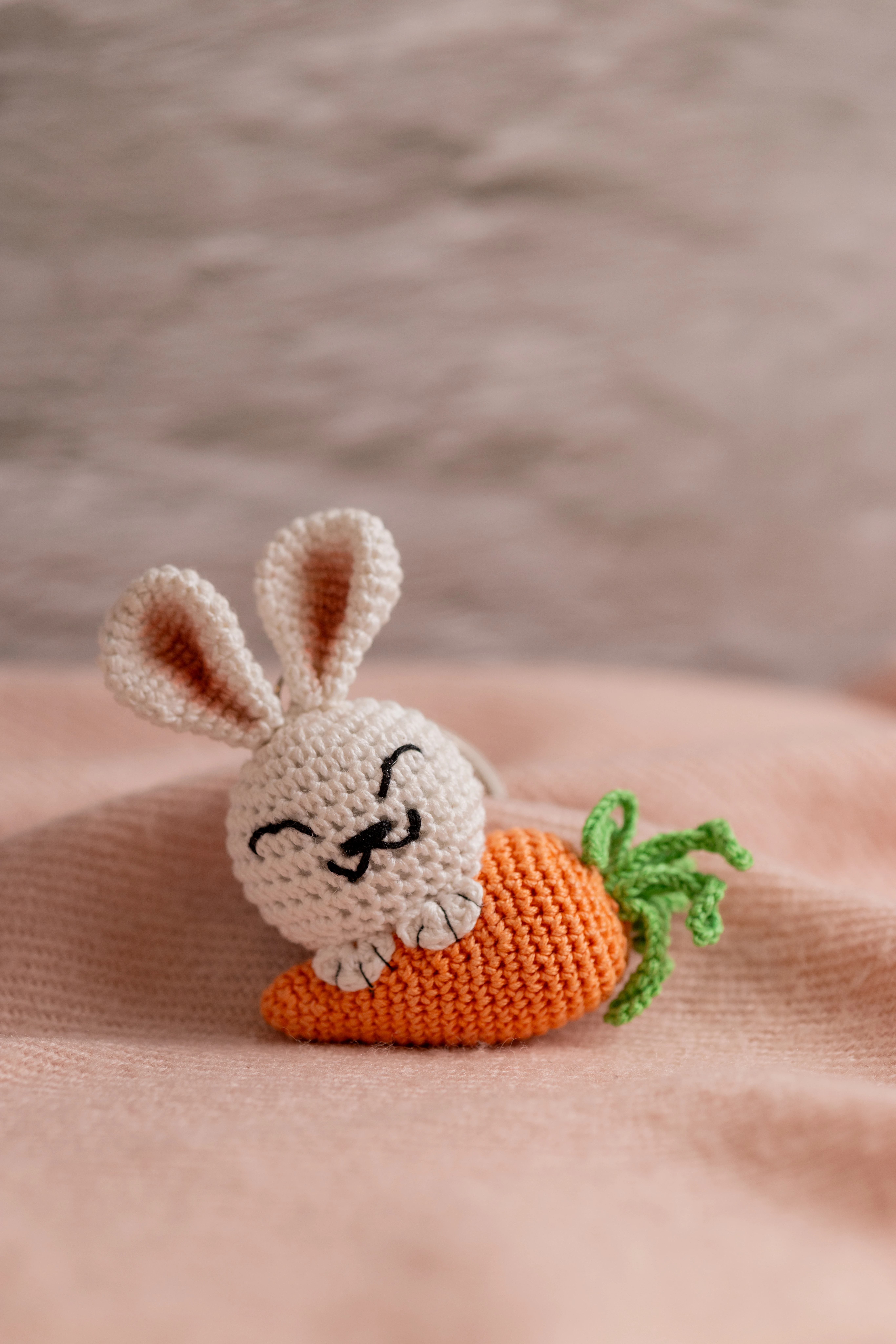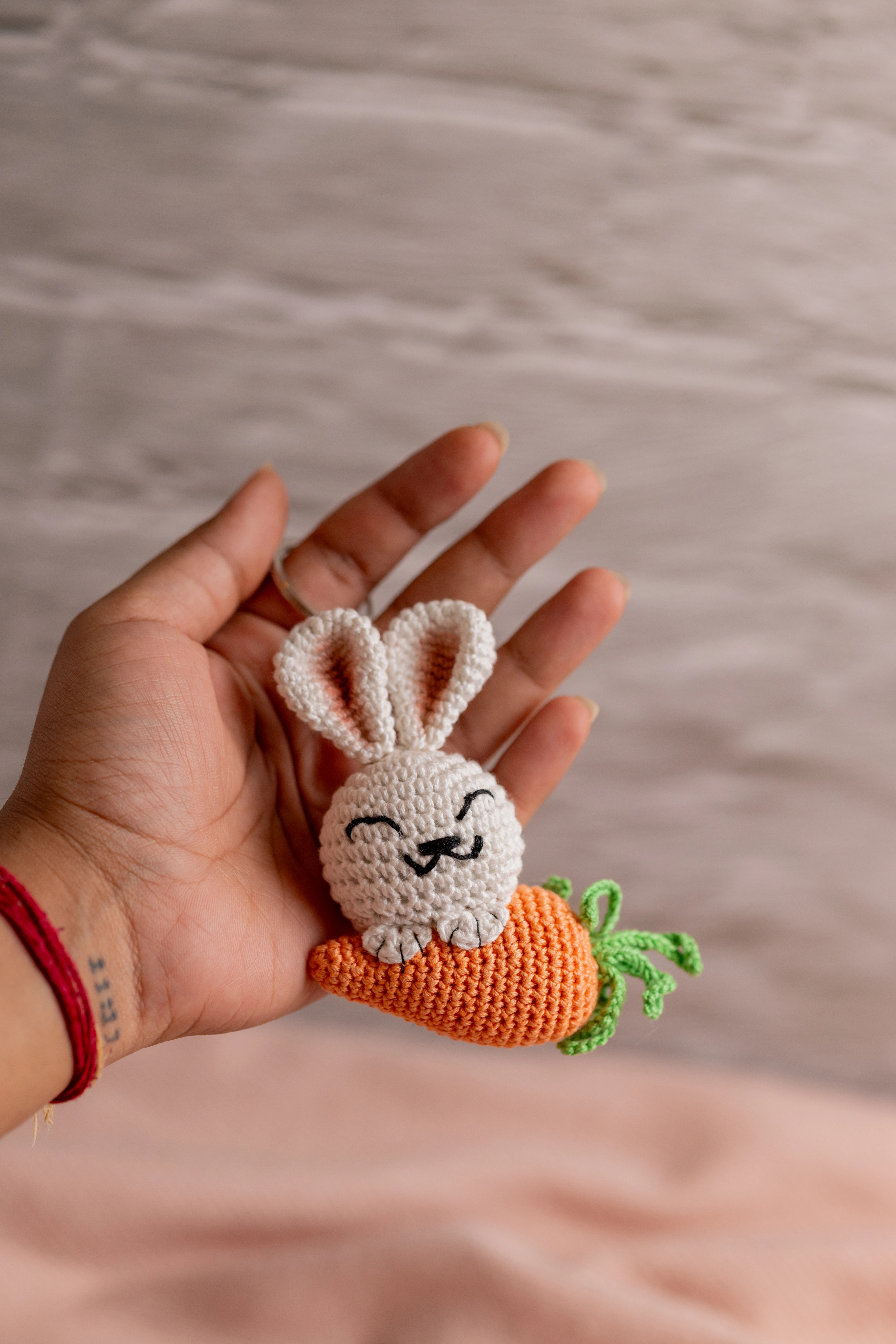 - **Charming Design:** Features a detailed **bunny** holding a miniature **carrot**, crafted from soft yarn.