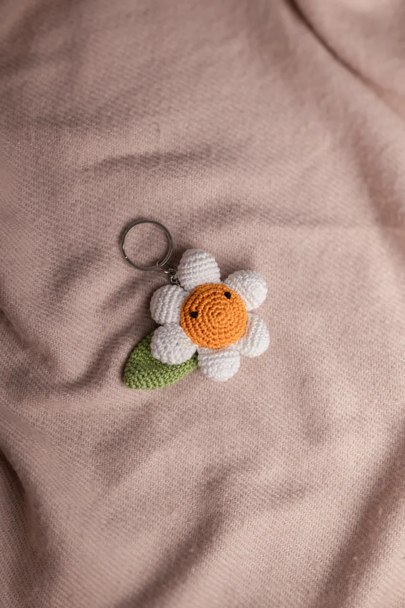 This durable daisy crochet keyring is designed for regular floral display: