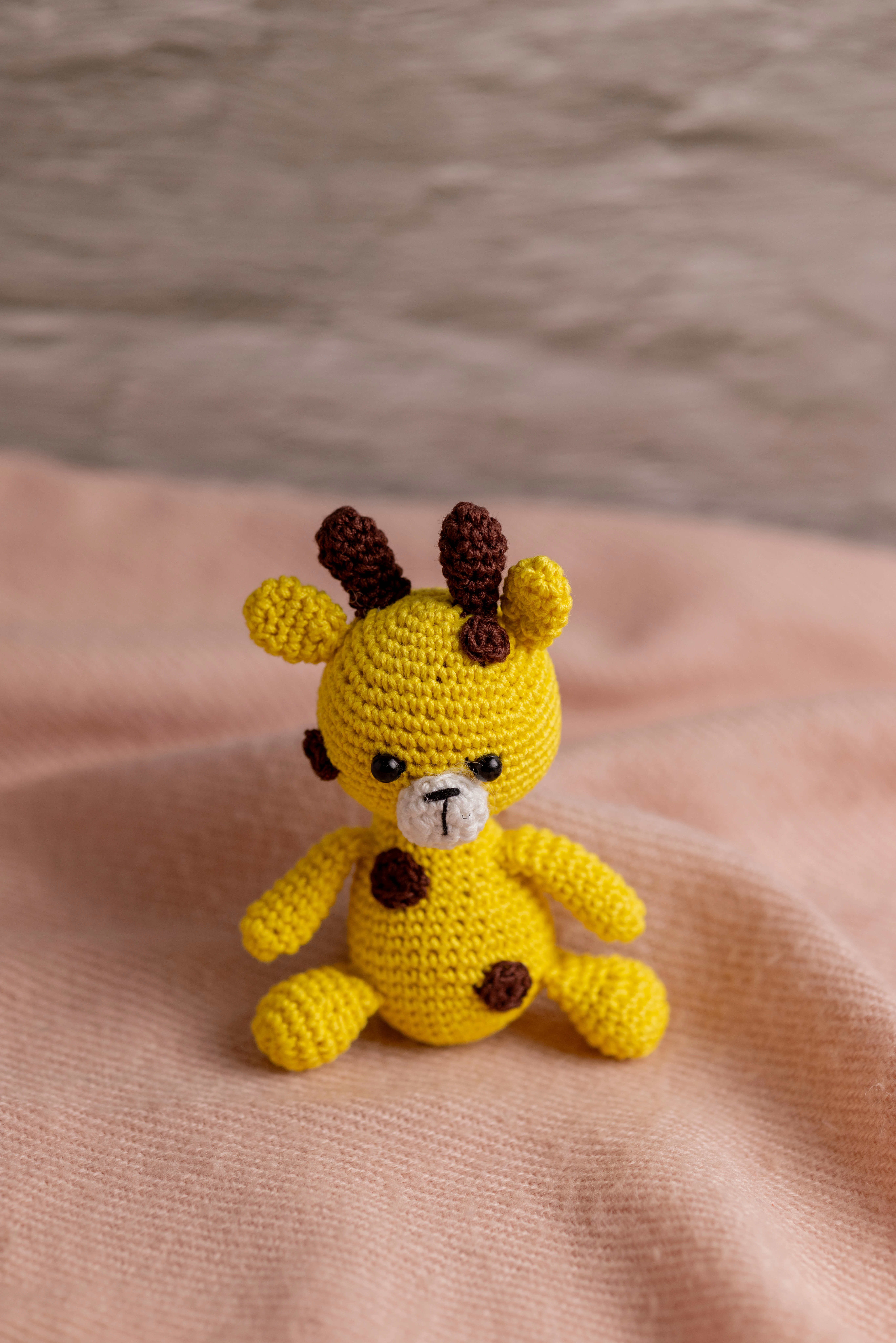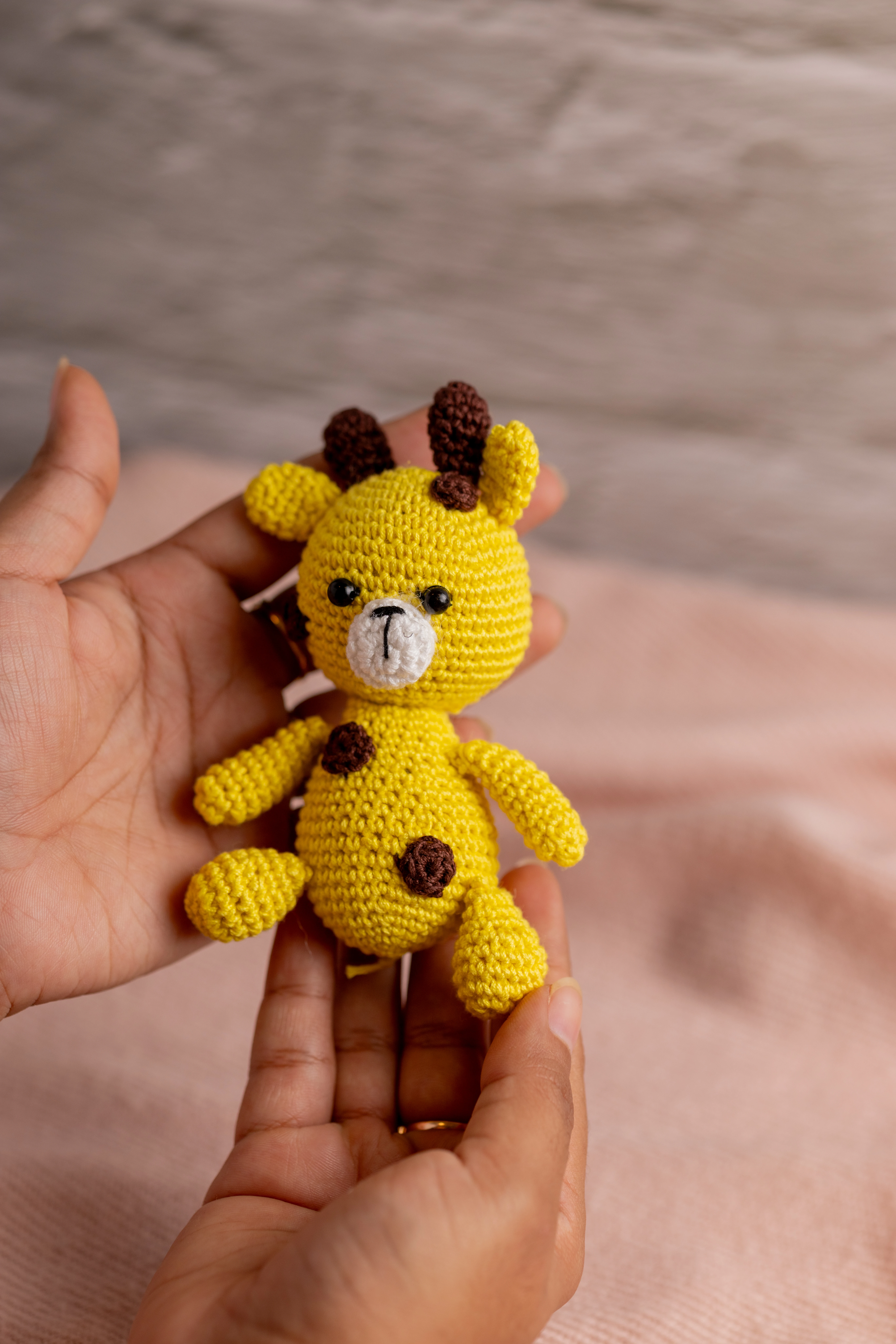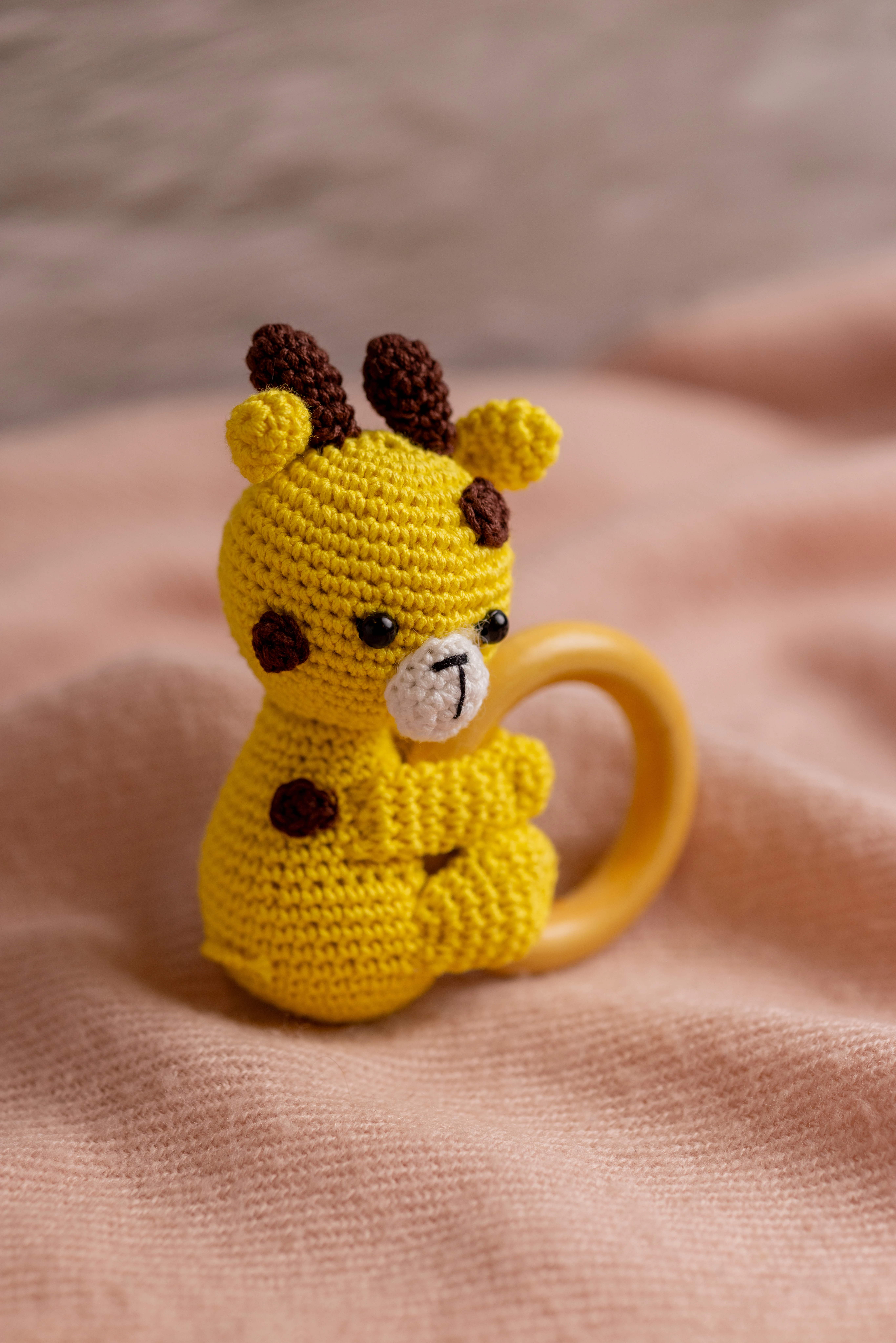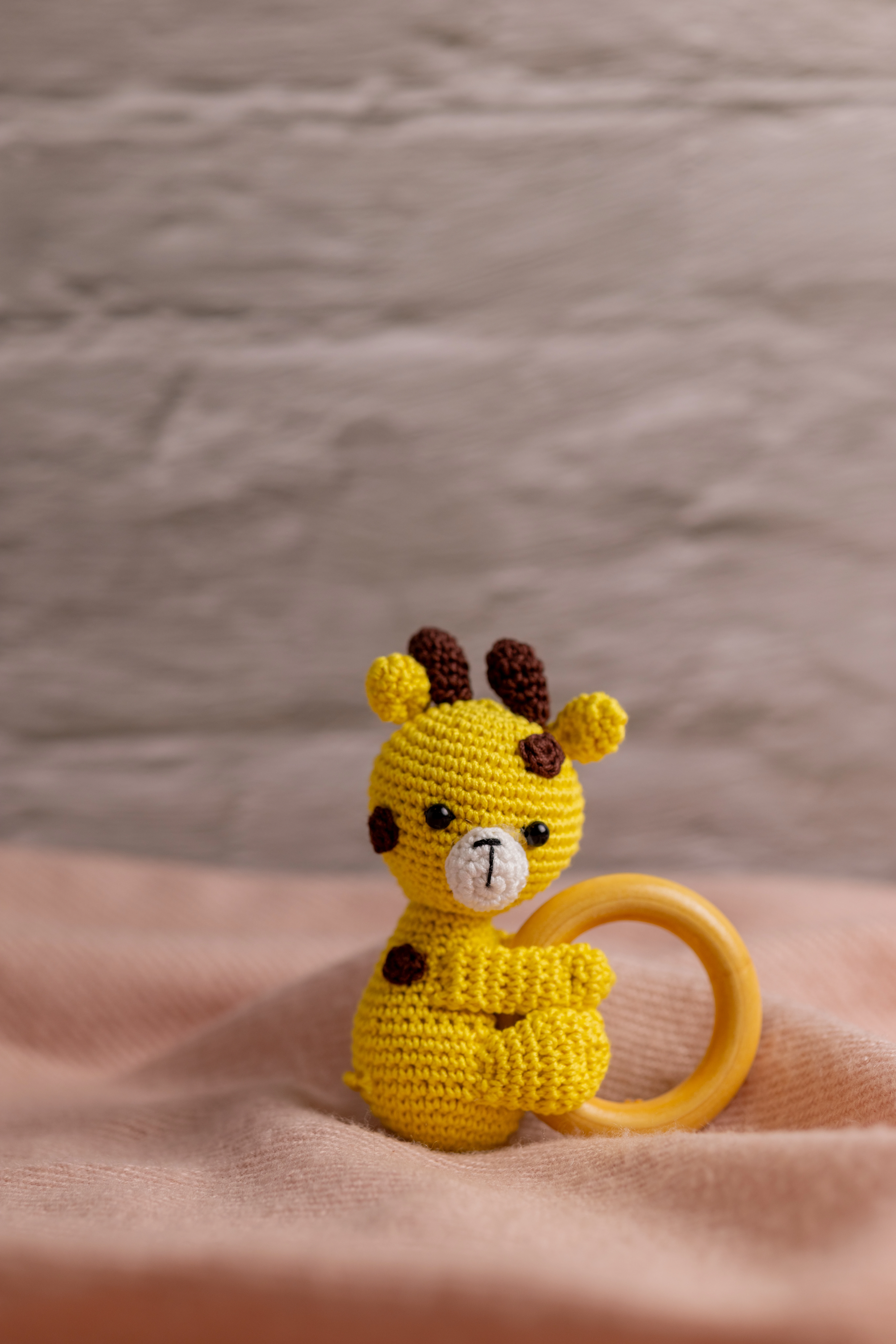 Handmade Giraffe Rattle and Toy Set. Crochet giraffe soft toy and matching sensory rattle, ideal ethical baby gift, shipped from Australia.