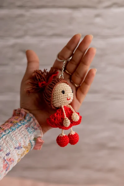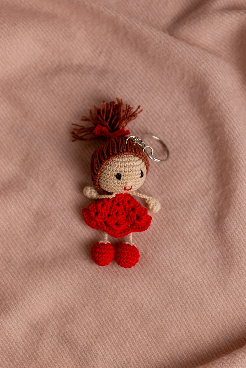 This one also pairs naturally with the rest of the crochet doll keychain range if you are building a little collection. The red colourway is bold and distinct, so it sits nicely alongside other colours without getting lost.