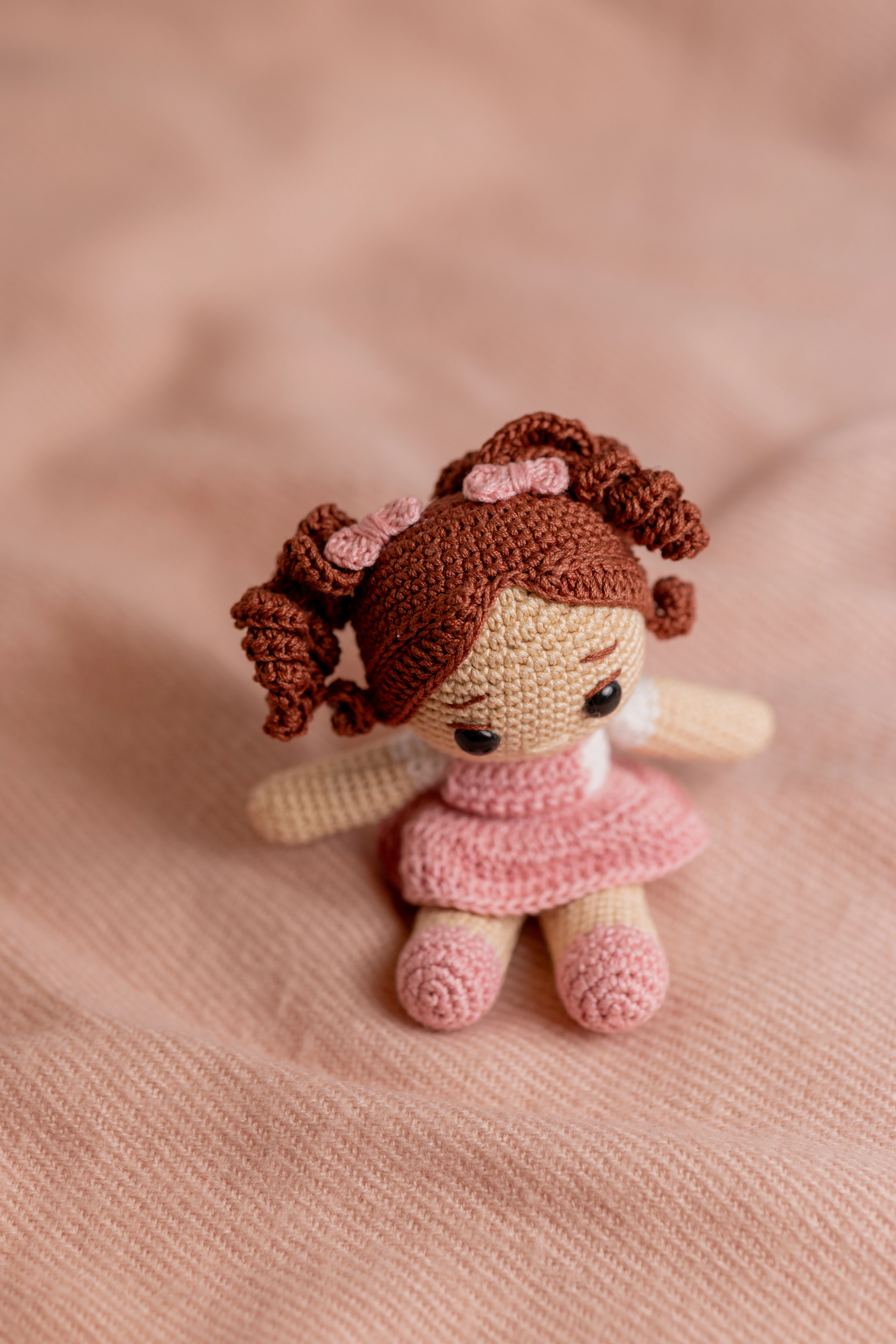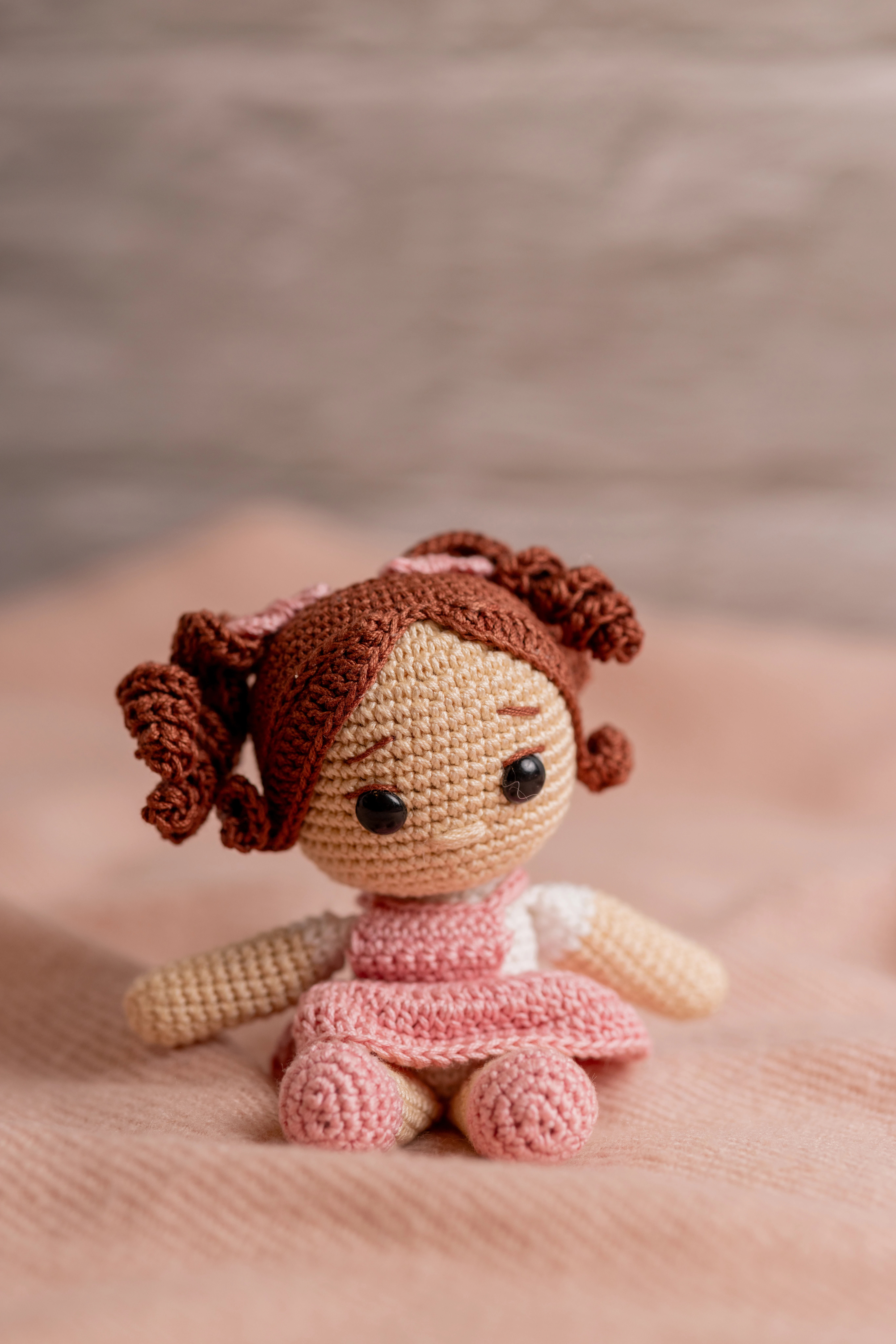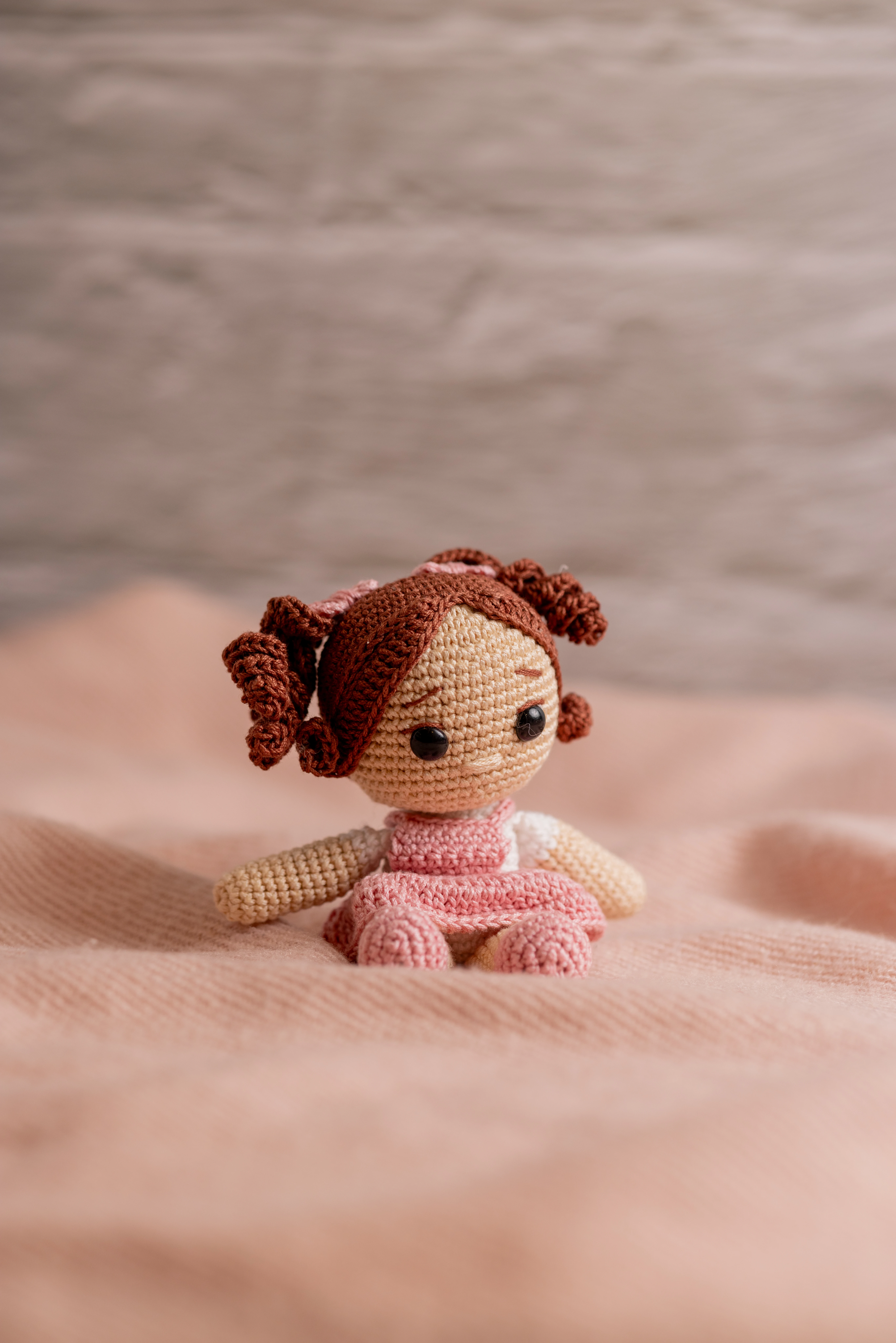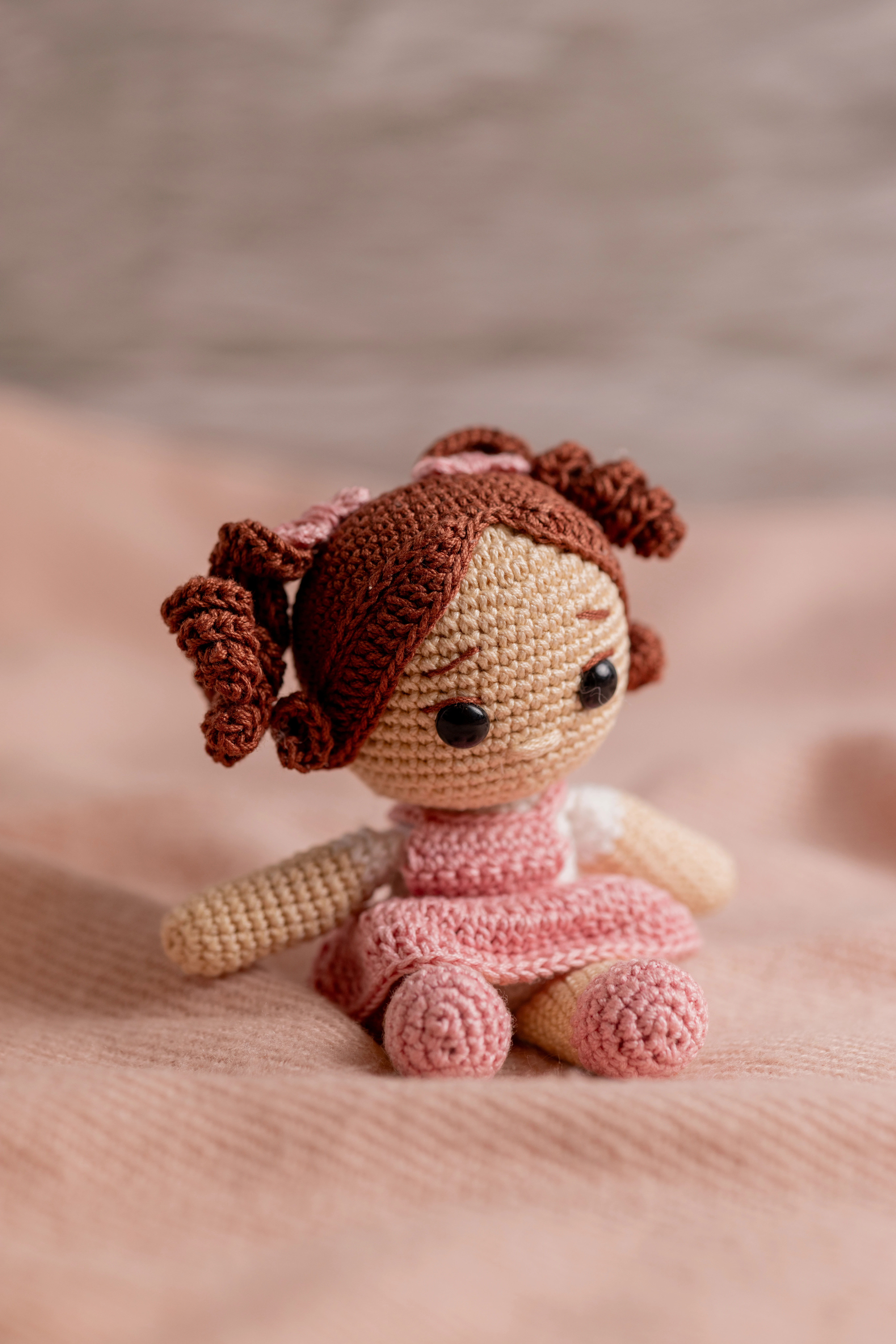 Handmade Amigurumi Miniature Doll. Small, crocheted soft toy perfect for little hands or keyring attachment. Ethical gift, shipped fast from Australia.